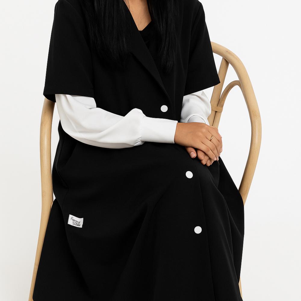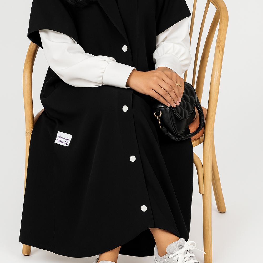 عباية بازرار امامية بتفاصيلها الأنيقة من الأزرار البيضاء والأكمام الواسعة راح تضفي لمسة من الفخامة على إطلالتكِ مع تصميم أنيق يناسب كل مناسبة.. اختاريها لتكوني الأجمل.