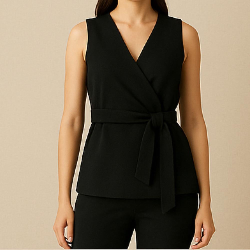 - البلوزة بدون أكمام مع ربطة جانبية تبرز جمال القوام